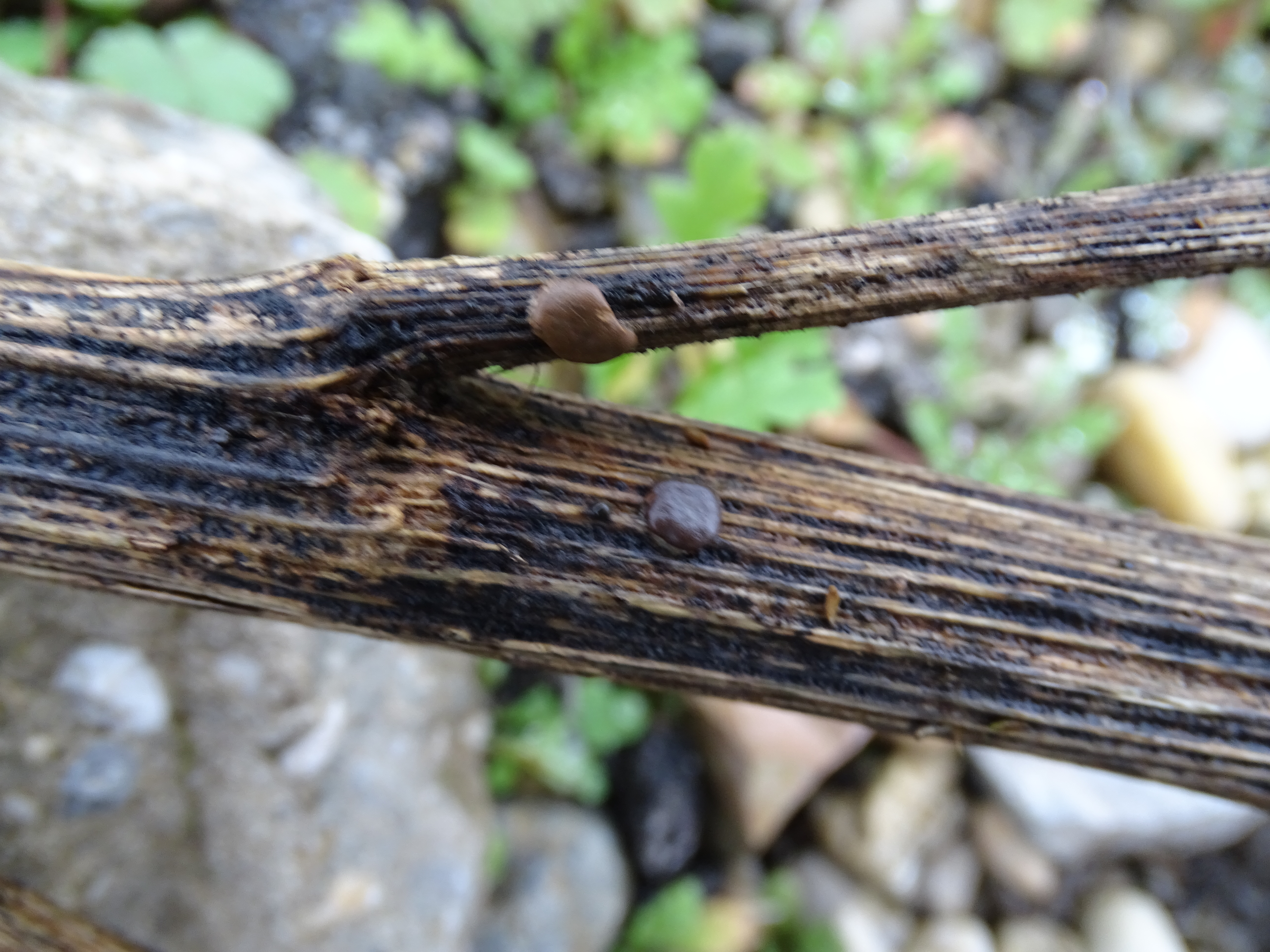 These 0.5 mm diam. acervuli were breaking through