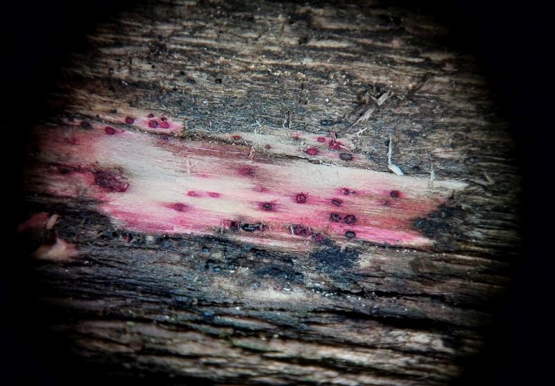 The wood is Popolus_tremula, the same branch on which Neodasyscyphus_cerina grew.