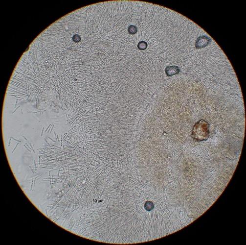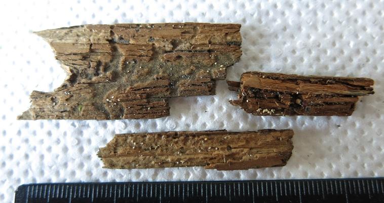 HB 9463: Chemnitz, Eibseegelände, Laubholzrinde am Boden "deponiert" (sieht etwas wie Nadelholzrinde aus). Kon. nicht gemessen. BM: ca. 10-20 x 2 µm.