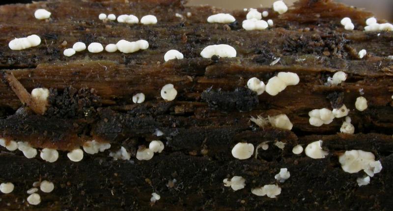 It occurs on both conifer and angiosperm wood. I have it in the folder Dendrodochium white-yellow-red cushions