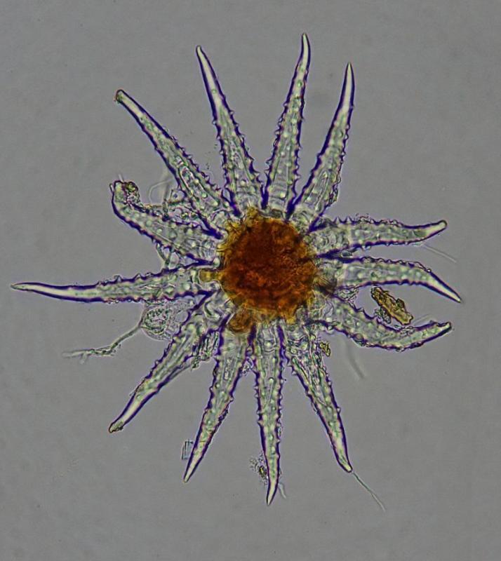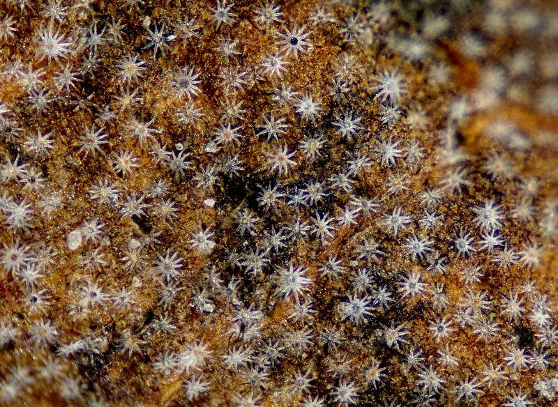i found these star-shaped formations on leaves of Forsythia. Does anyone know what this could be? The diameter is 300 µm.