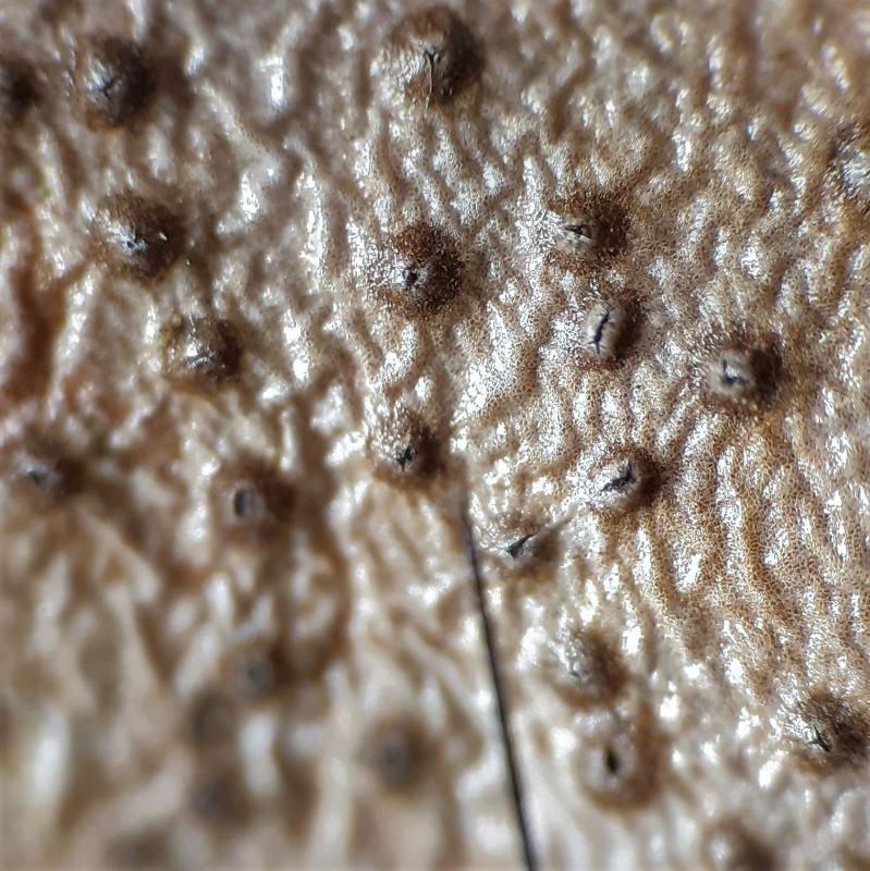 These 0.5 mm diam. acervuli were breaking through