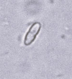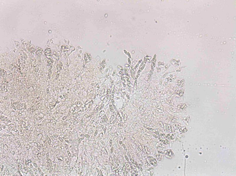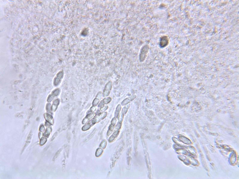 Spore: 6-8.5 x 2.3-3 µm; subcylindrical with 1 septa, constricted at the septa