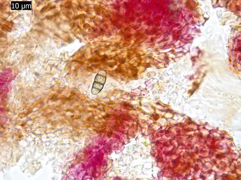 Spores [95% - 14 - QPr - v - H2O(nat) ] = (9,2)9,4 - 11,7 - 13,9 x 2,7 - 4,1 - 5,4(6) µm.