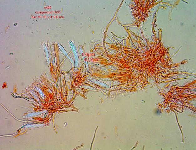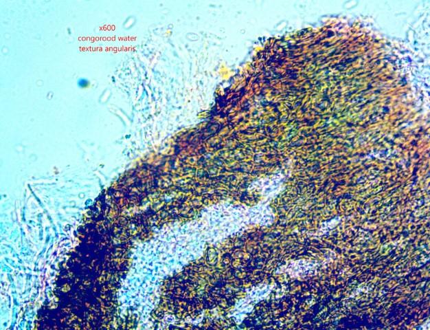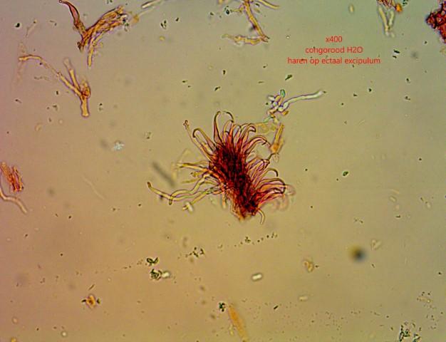 Possibly curved hairs on the edge of the excipulum (see photo). Texture angular.