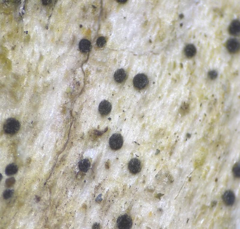 These 0.5 mm diam. acervuli were breaking through