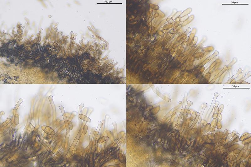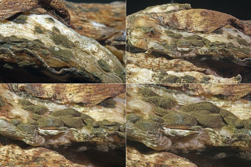 These 0.5 mm diam. acervuli were breaking through