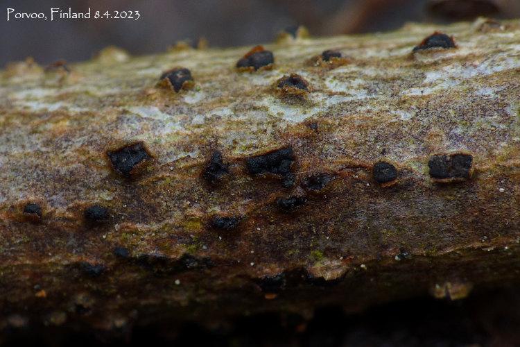 Black anamorph on fallen branch