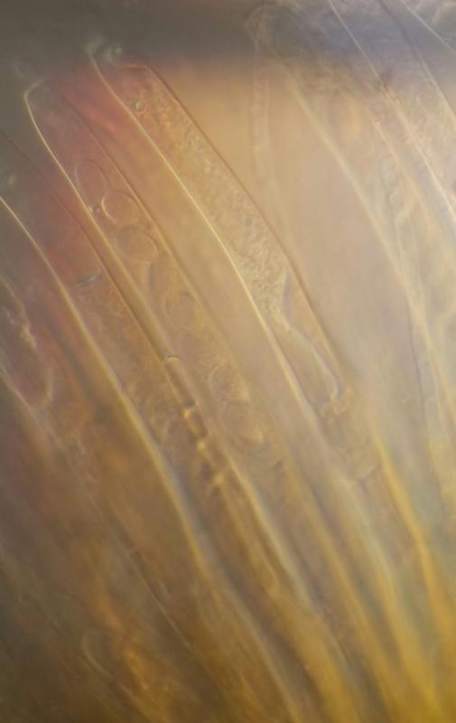 Another character very important for Peziza species is the structure of the flesh. You must make a thin section and examine how many layers are present and their structure.