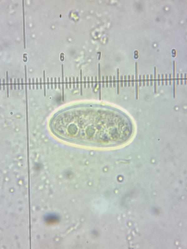 Size of living and mature spores is 21-25 x 9-12 microns, measured in water.