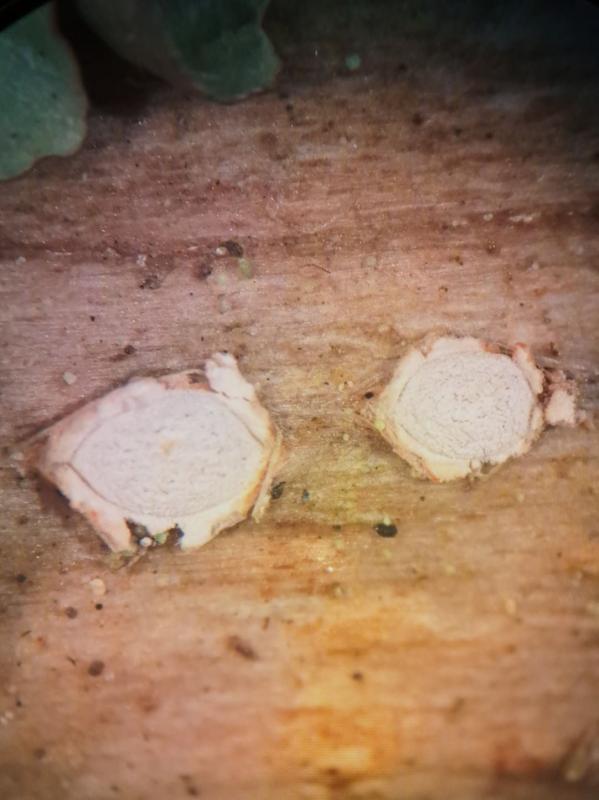 These 0.5 mm diam. acervuli were breaking through