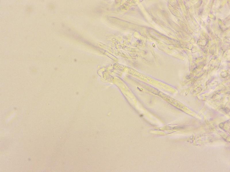 Asci 8 spored, clavate (but very narrowly so), croziers + , J +. 42-46 x 4,2-5.