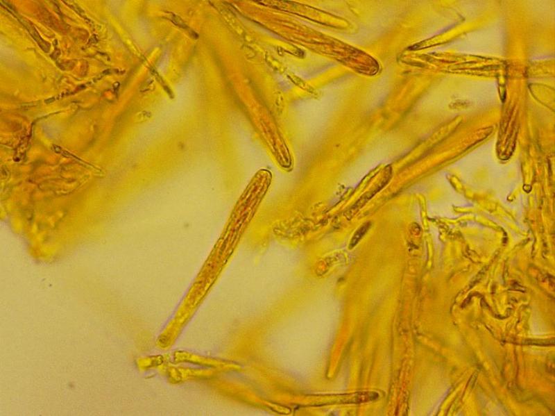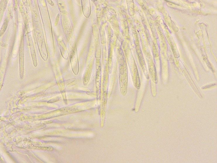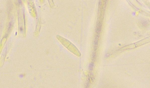 Paraphyses exceeding the asci, lanceolate. Spores fusoid, septated when mature, 9-13,2 x 2-2,5.