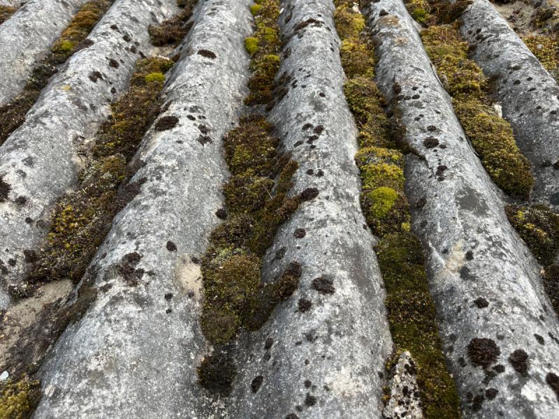 Bild 1: Standort Welleternitdach mit alten dichten Moosrasen.