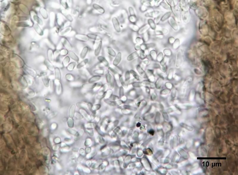 Abundant simple hyaline conidia were formed, measuring around 4-4.5 x 1.5-1.8.