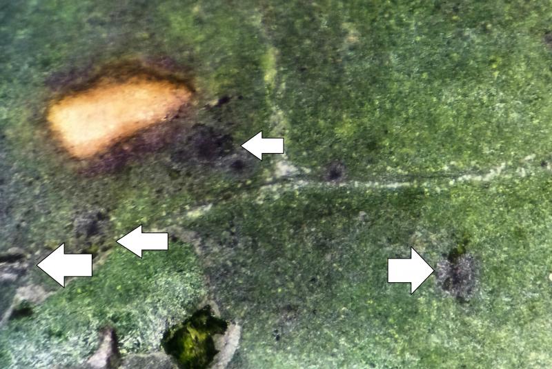 While searching for the folicolous lichen Phylloblastia spp. on juvienile Hedera helix leaves I came across an abundant anamorph occupying the similar habitat. I cannot find an anamorph listed for Aulographum hederae, which is what I thought it would be initially. However, the leaves are living, attached to the plant.