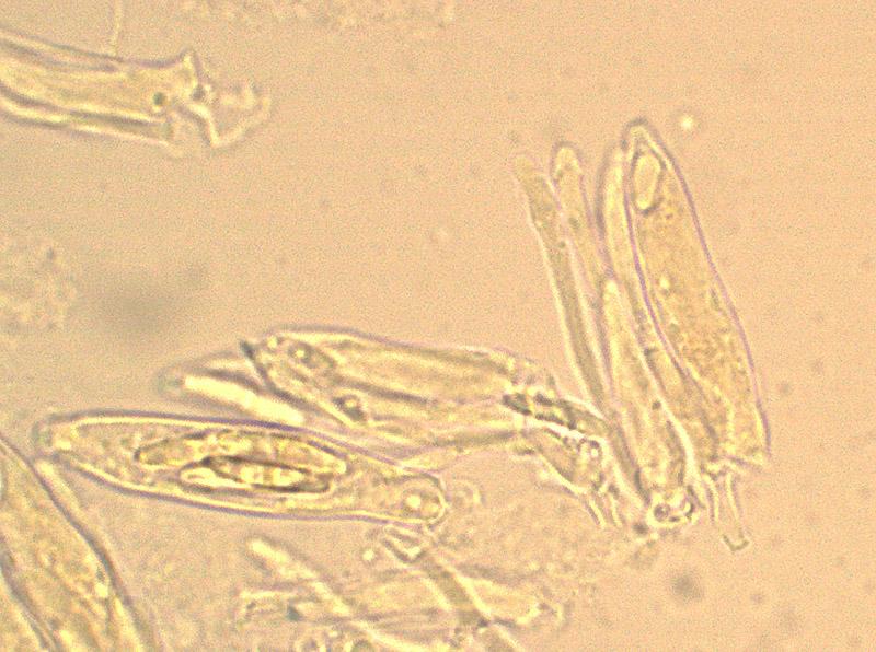 I see only dead asci and spores, and a paraphysis on the right. I wrote an article in Mycotaxon in 1992, the best would be to have a look there.