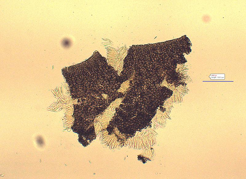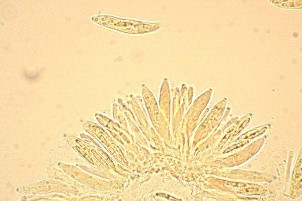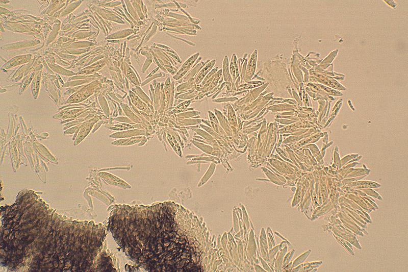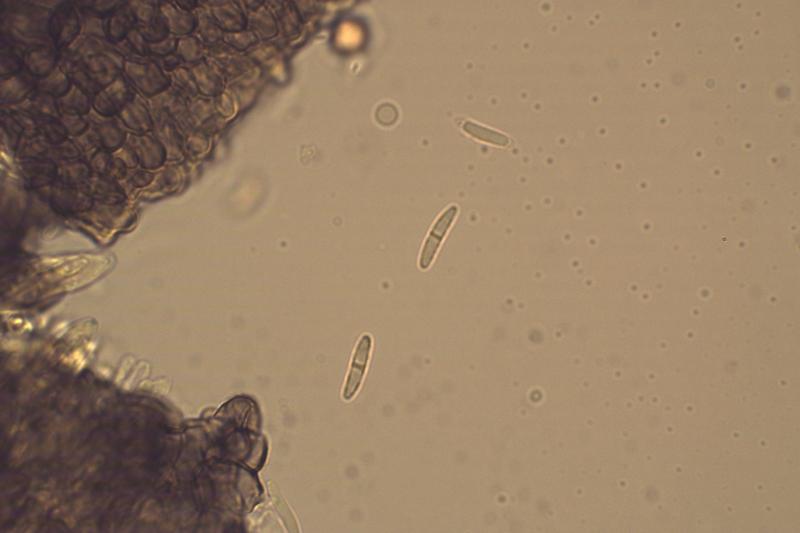 Thomas LæssøeSpores brownish, typically 4-celled; 26.8 x 2.4;