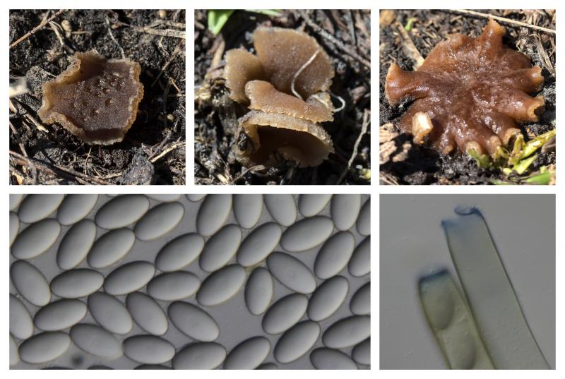 Bonjour le forum,J'ai récolté hier à 2500 m d'altitude, à proximité des névés, une pézize brune que je pense être Peziza heimii compte tenu de la grande taille des spores.