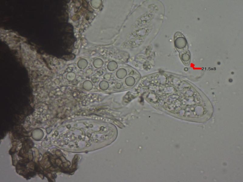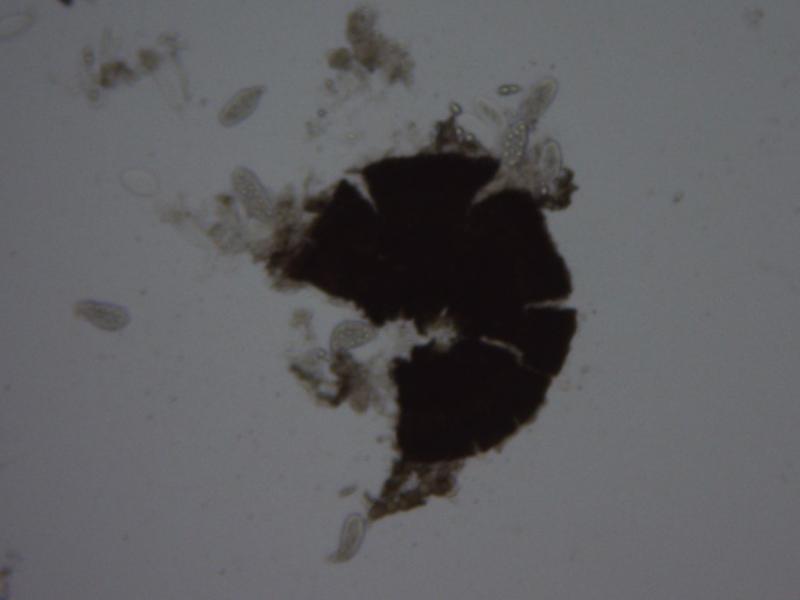 Dear forum,On the leaves of Juniperus sp. I found some small black thyriothecia with a diameter of about 0.2-0.25mm. The scutellum was composed of quadrilateral cells radiately arranged. The cells were markedly longer than wide.Asci measured 53x22µ, 8-spored, bi- and triseriate.Spores measured 21.5x8µ , hyaline, 1-septate. Each cell of the spores contained a large guttule and several small ones.
