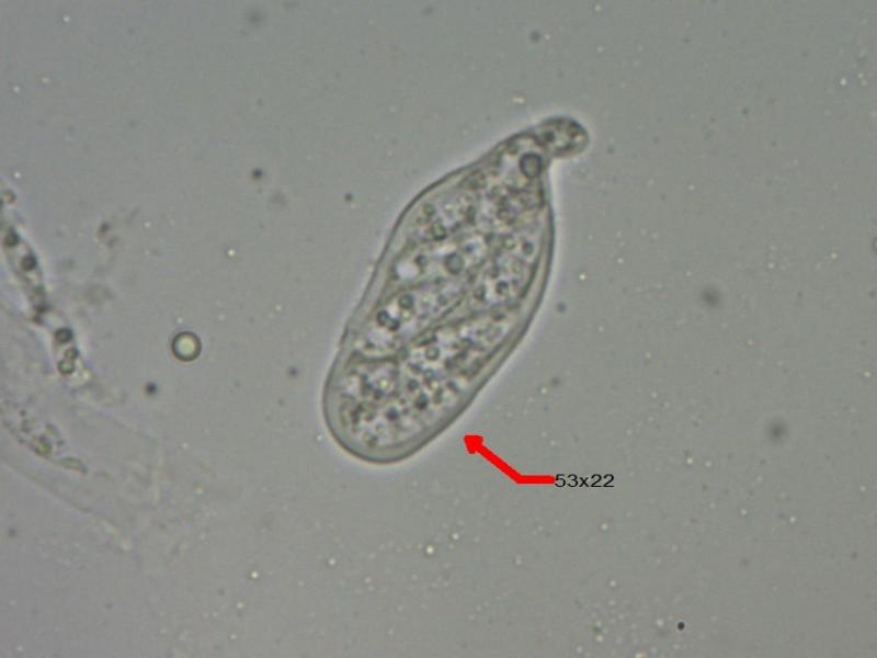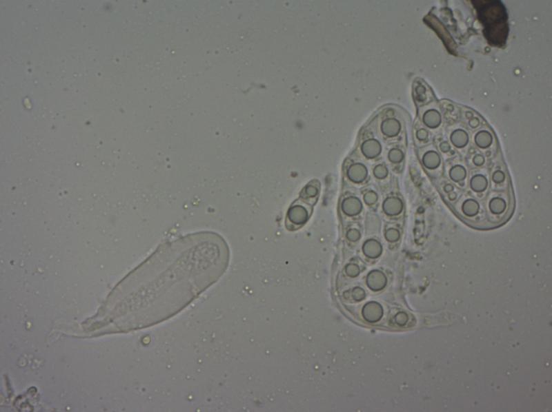 Aan Seynesiella had ik niet gedacht omwille van de grote guttulen die niet vermeld worden in E&E en omdat ik in de sleutel van de Microthyriaceae gekozen had voor saprotrofe soorten met hyaliene sporen.Seynesiella wordt beschreven als parasiet met licht gekleurde sporen. In een vroegtijdig stadium blijken die echter wel hyalien te zijn.In Dennis ( dank voor de referentie ) staan de grote guttulen wel beschreven.