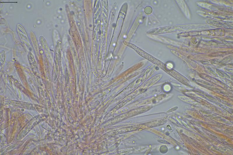 Thomas LæssøeSpores brownish, typically 4-celled; 26.8 x 2.4;
