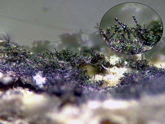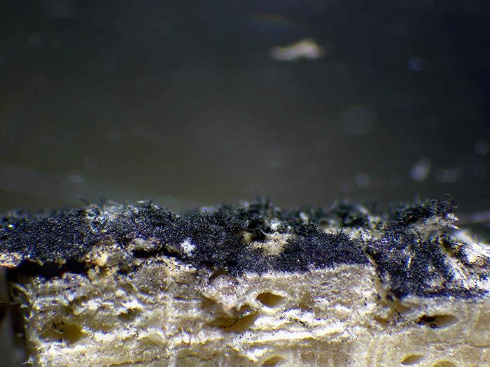 Con aspecto de fina pelusa de color negruzco.