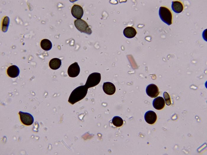 Thomas LæssøeSpores brownish, typically 4-celled; 26.8 x 2.4;