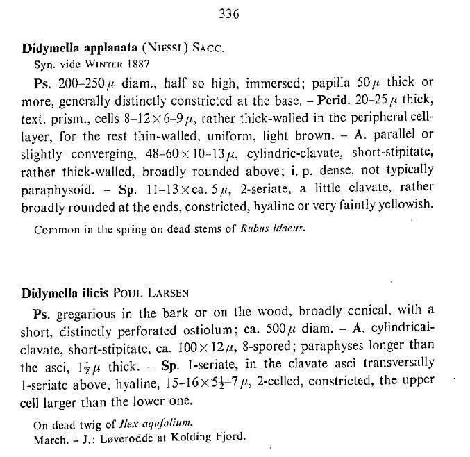 As I said before, I think it is quite possible that Didymella ilicis is Keissleriella cladophila. I found it very difficult to see the periostiolar setulae and therefore considered it to be a true Didymella. And I think Larsen had the same problem as I did until after several sections I was able to see them.Many thanks Martin and Henrik for your kindly help.
