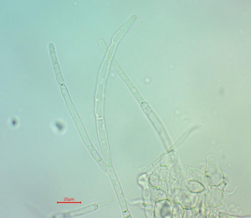 Thomas LæssøeSpores brownish, typically 4-celled; 26.8 x 2.4;