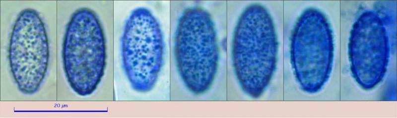 Ascospores (16.6) 17–19.2 (20) × (7.9) 8.4–9.9 (10.6) µm, Qe = 2.0; pluriguttulate; verrucose to pseudoapiculate, warts punctate, irregular, isolated.
