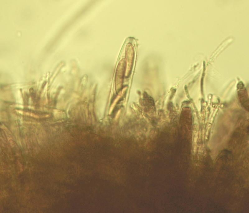 Looking for opinions on this Rutstroemia; I considered R. alnobetulae - spore size, shape and content match, but there's no IKI blue reaction with paraphyses.