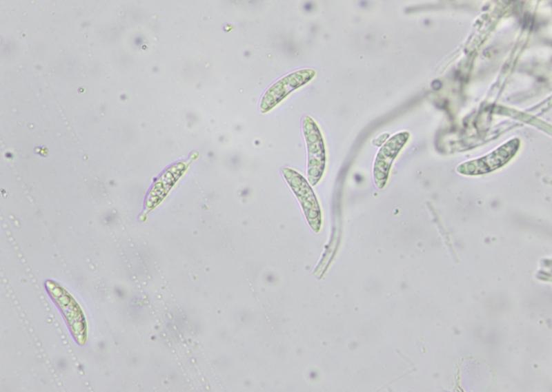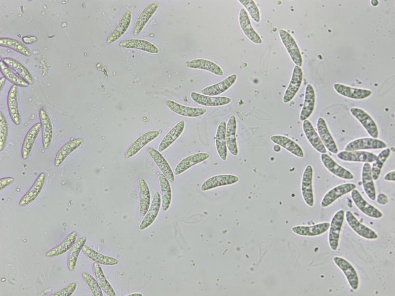 Spore size: Me = 26.5 × 6.2 µm ; Qe = 4.3 (some over 28 µm)