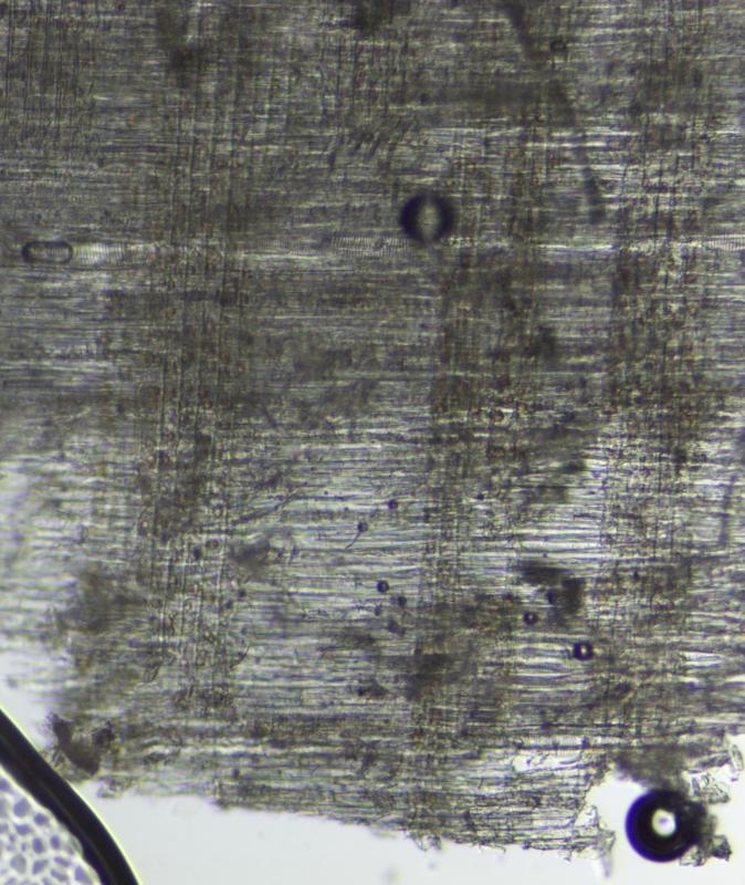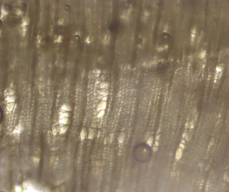 Sorry I failed to say that you must hit the vessels. The rows of larger cells in your cross section show such ladders in radial section. Vessels are often very abundant but here they are more scattered. Bad luck!