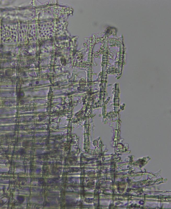 Habitat/substratum: peat bog fragment around a mountain stream, 1800 m elevation, with Alnus, Salix, Pinus mugo, on a dead twig, possibly from Alnus glutinosa.