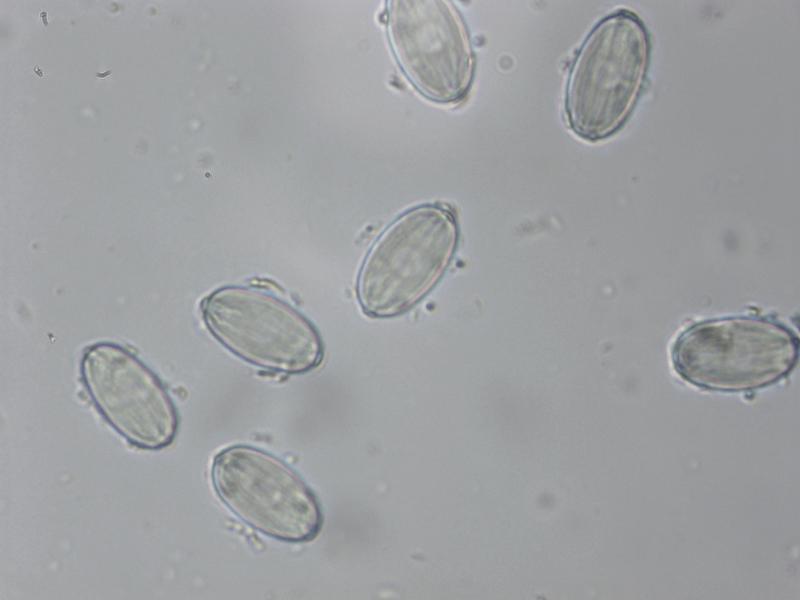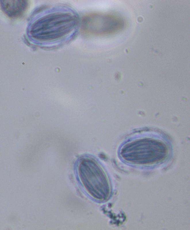 very conspicuous perispore with striation visible even without staining, and with polar pustules.