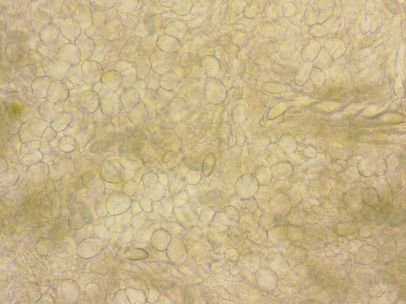 1. hyaline, slightly capitate, apex 4,4-5,6 µ, filled with light yellow VB's