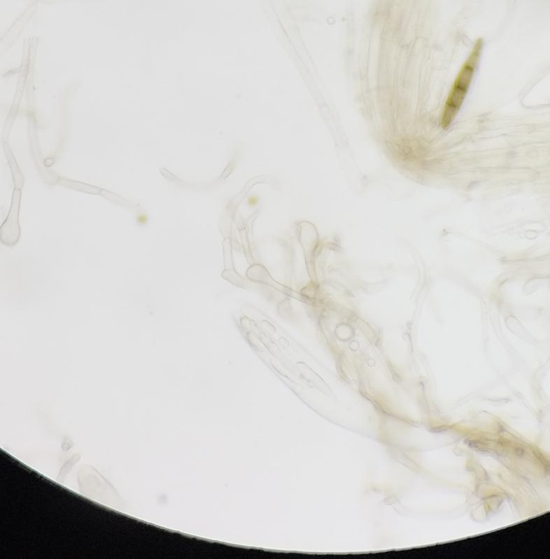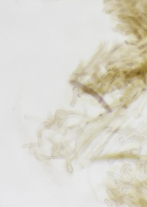 Thanks Luc! I was on the holiday last week, but here are some pictures fof the top-cells from the paraphyses. Many of them are straight and something like 12,5 micrometers but there are some really strange curved ones also. I just watched supposed Glutinoglossum circinatum, and there is same kind of style also in the paraphyses with this. Or at least I think that they are paraphyses, I just read something about pseudoparaphyses from Nannfeldts article, and I dont know the difference.