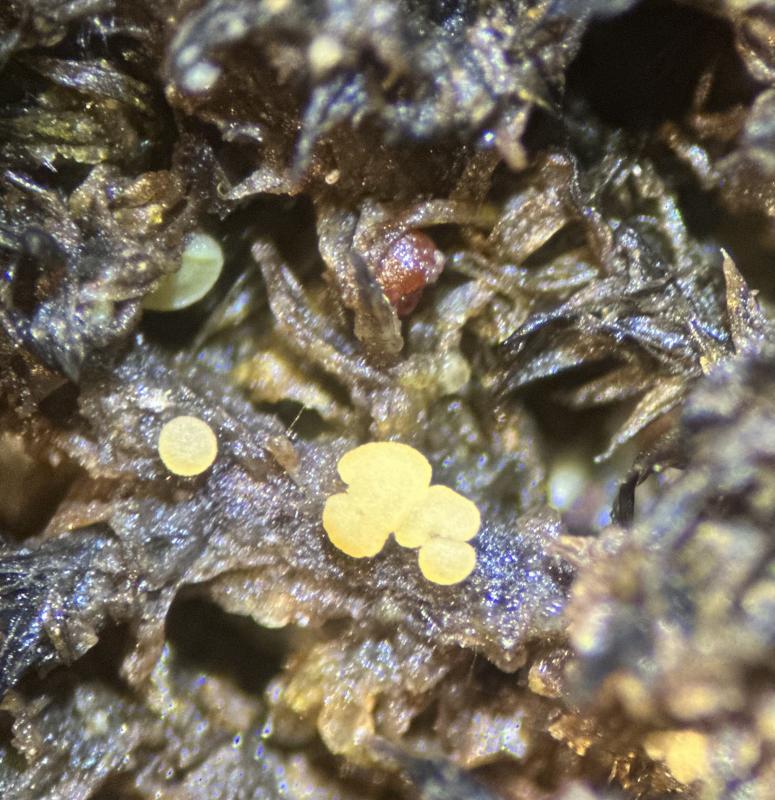 Phaeohelotium aff. epiphyllum on moss (First thougt to be Bryoscyphus)