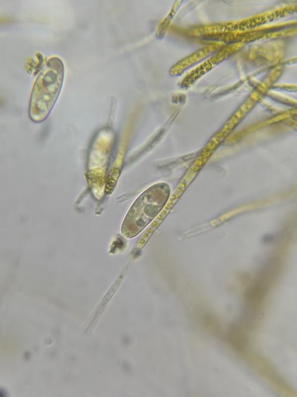 Hi! I wounder if anyone have seen this species before? Or knows it. Found in alpine habitat on racomitrium. Asci is 89-120 x 15-21um with no blue/ red reaction in lugols. Spores 17-25 x 5-7um alive. Spore get 2-3 dots of red reactions in lugols as Roseodiscus formosus. Parafyser with bacteria? Atleast they a moving when alive. In Koh 10 there is a yellowish solution, from the parafyses. Apothecia is Koh negative. Best regards.ITS AND LSU done.
