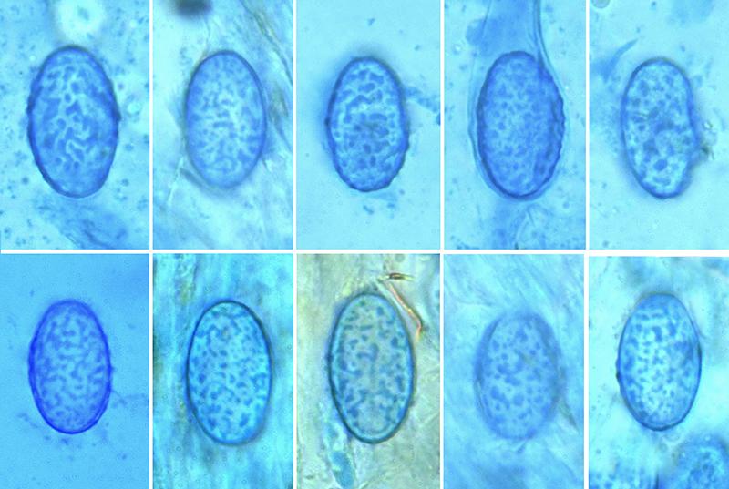 The spore ornamentation is typical. In French, we sometimes use the adjective "amiboïde" to qualify it, in reference to the shape of some amoeboids.