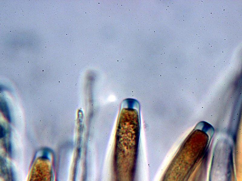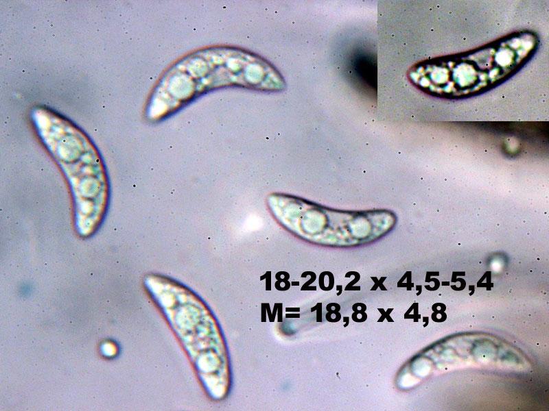 Enrique, les spores de R. petiolorum devraient avoir un court apicule à chaque extrémité je crois ? En plus c'est sur Fagus, non ?
