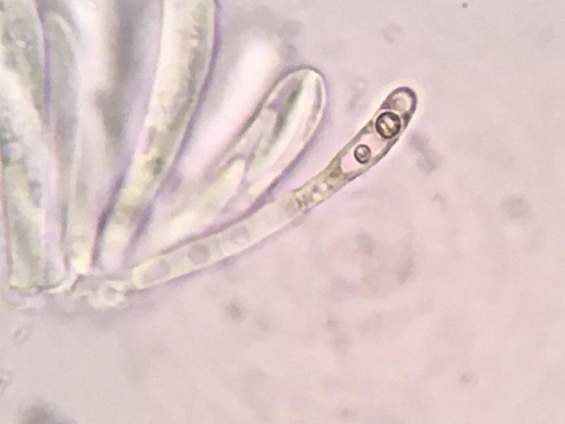 Asci 4-spored, IKI+, clavate, 32-37 x 5.2-6.0µm