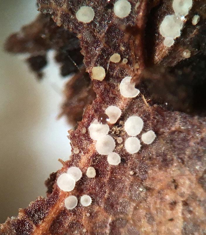 Apothecia smaller than 1mm in diameter growing on Quercus leaf (I think).