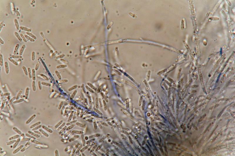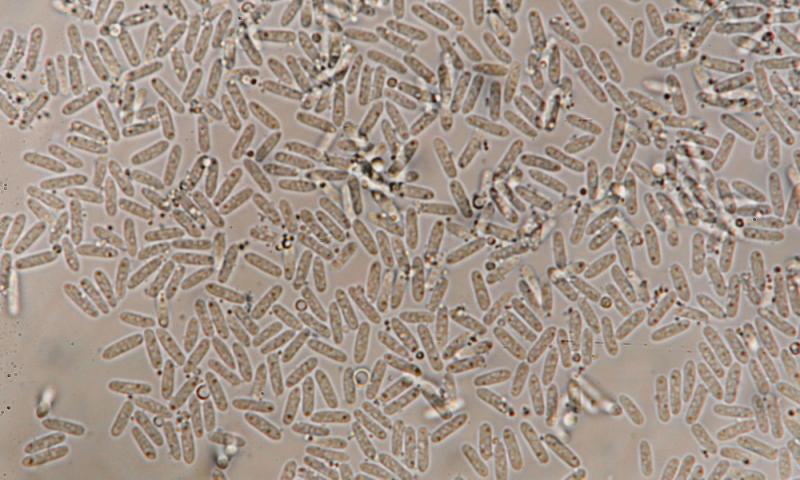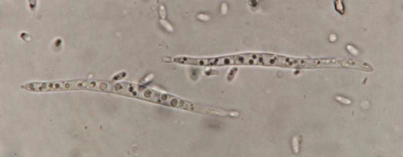 However, the most striking feature here are the budding, multiseptate spores.