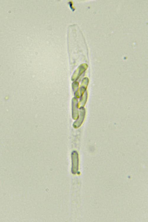 The asci are pedicellate and 8-spored, IKI negative.