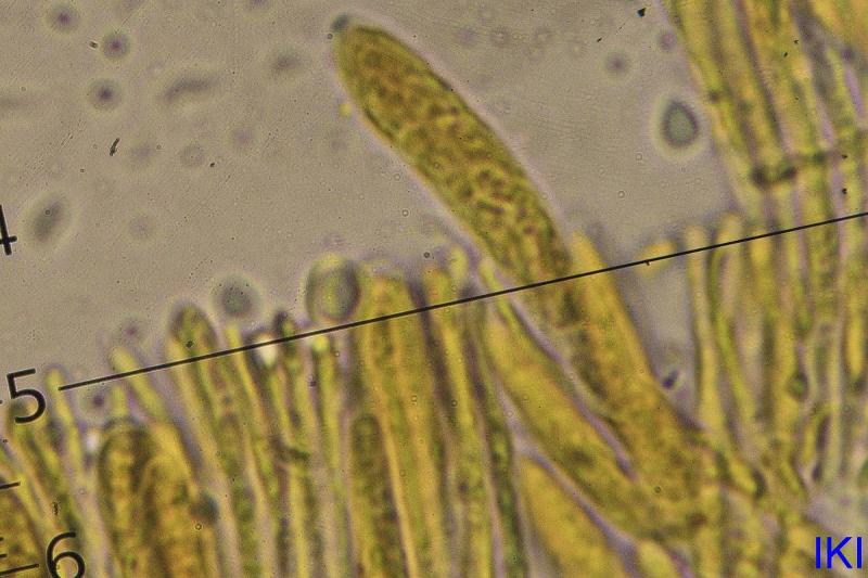 Found 24.12.2023 on old stump of Quercus sp. Asci 30-40x 4-6 um, IKI+, no croziers found, spores 3x6 um, paraphyses 35-45 x 1,5-2,5 um.