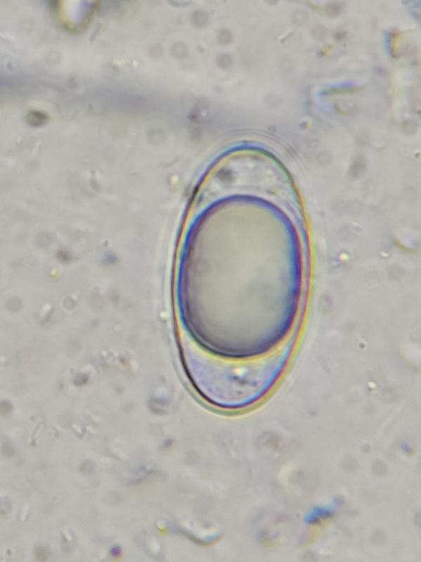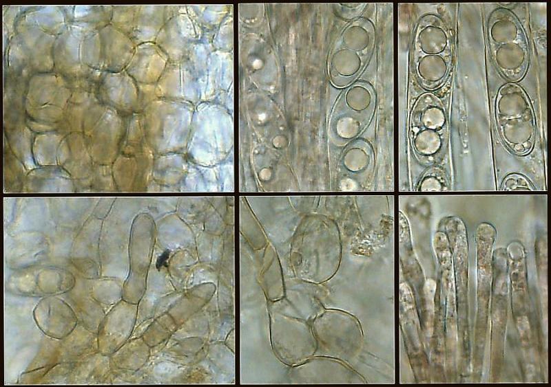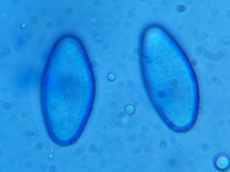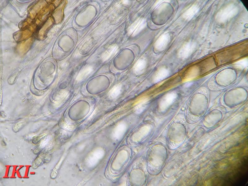 Sp 21-28 x 12-13, seems smooth to me, with two guttules merging to one in dried material. Asci IKI-. Paraphyses widened to 4-6 at apex.