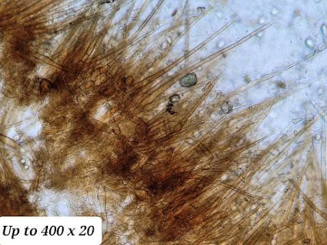 Hairs brown, multiseptate, up to 400 long, many short and obtuse or pseudohairs, other long and more pointy.