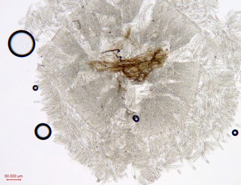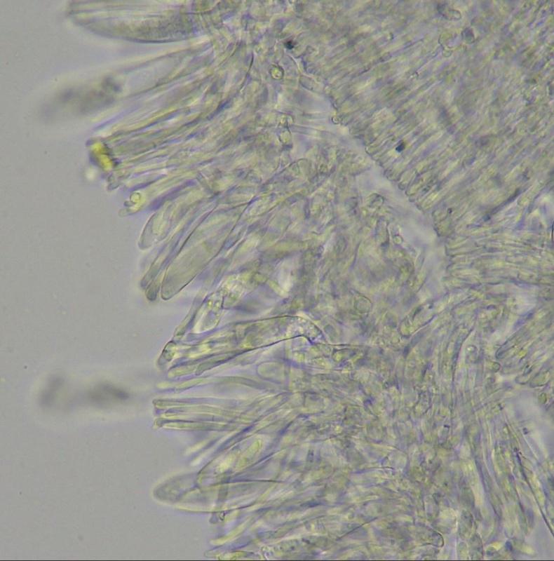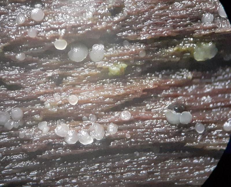 We were thinking towards Hyaloscypha and were suggested Hyaloscypha minuta (Parorbiliopsis) , a species without hairs, but with reaction IKI neg.